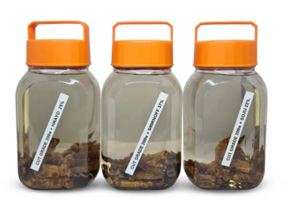 The ideal ratio is 200g of ginseng root to 1800ml of alcohol. It is use alcohol with a minimum content of 21% to prevent spoilage. Patience is key, as the infusion process requires a minimum of 6 months or longer is better.